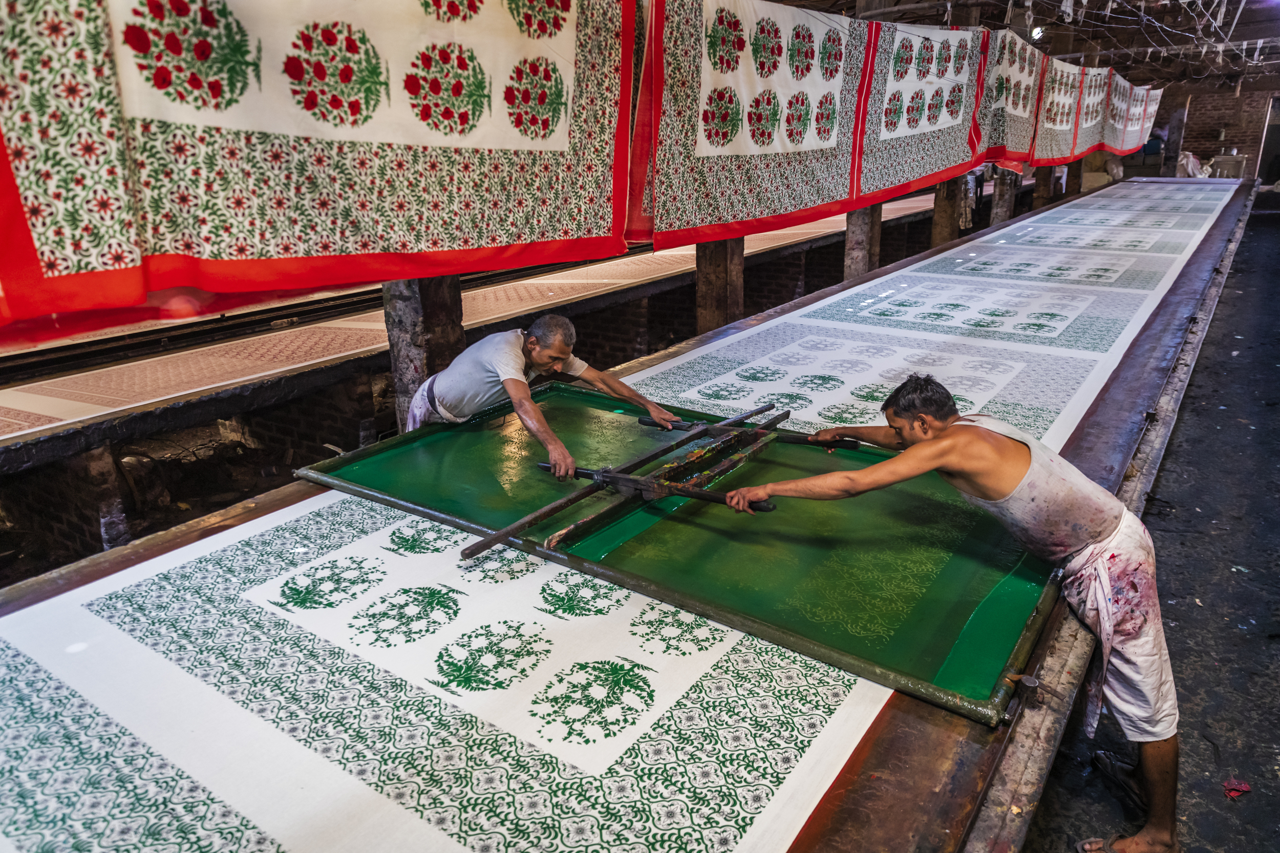 When in the village you will see immediately the great bundles of fabric drying in the sun. Logs of teak are finely carved into printing blocks while natural dyes are mixed in preparation. The hand-printing process itself is a precise skill, the artists honing rhythmical movements to create the same pattern over long tables.